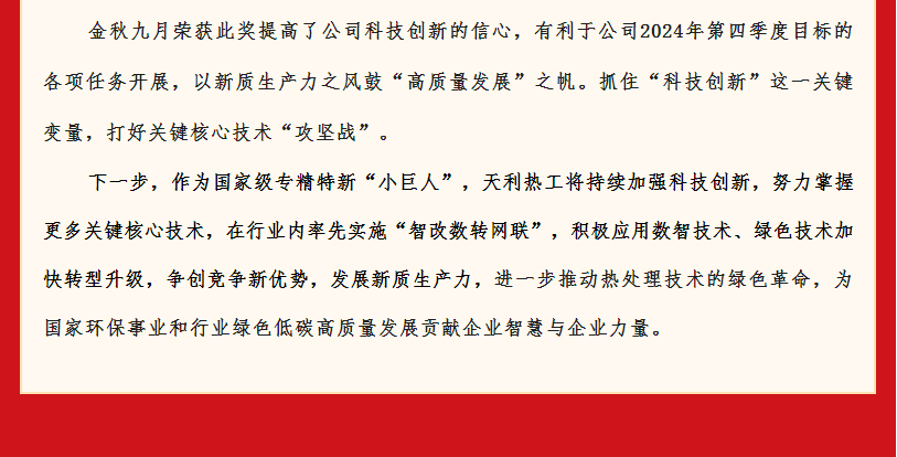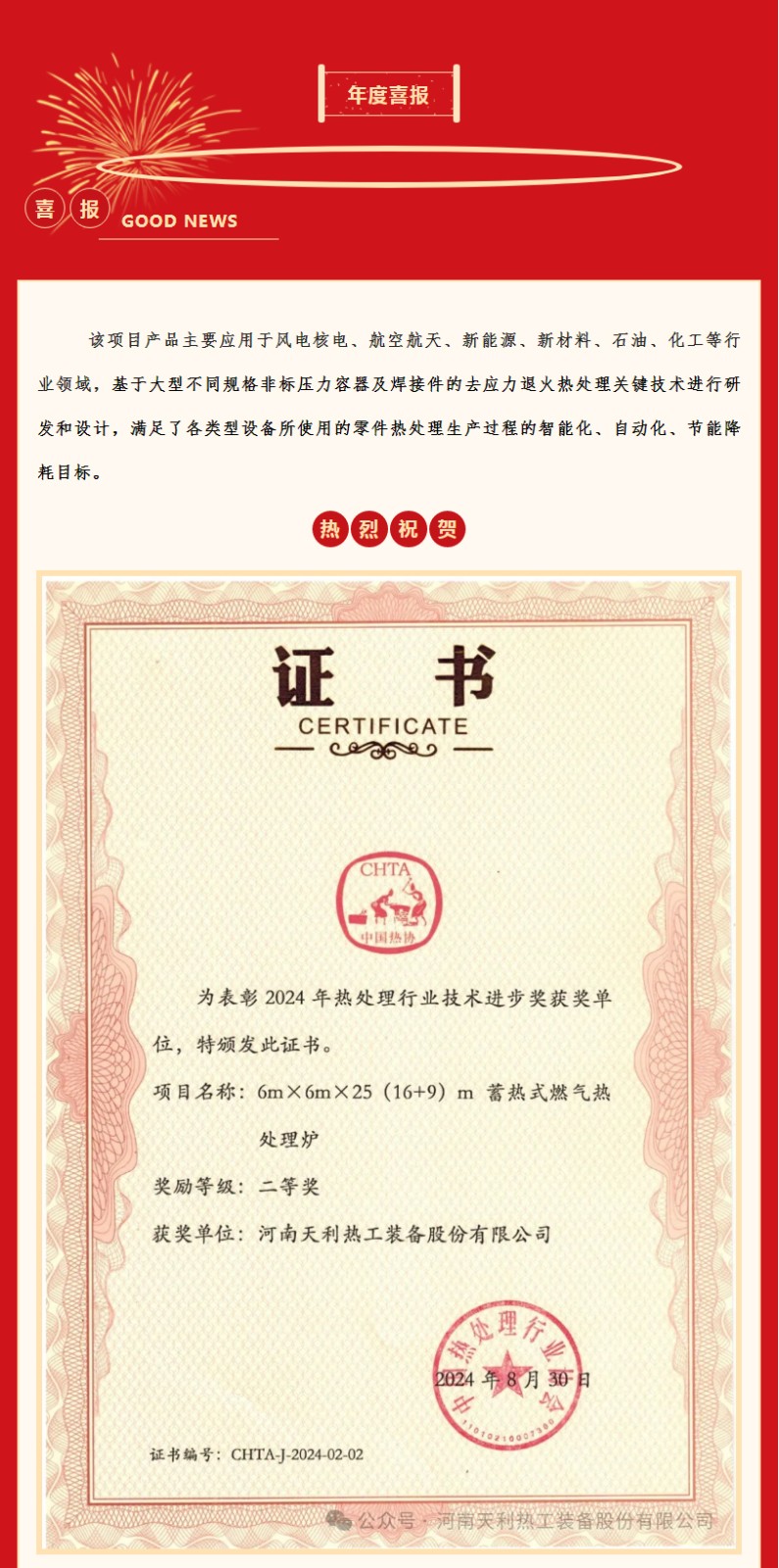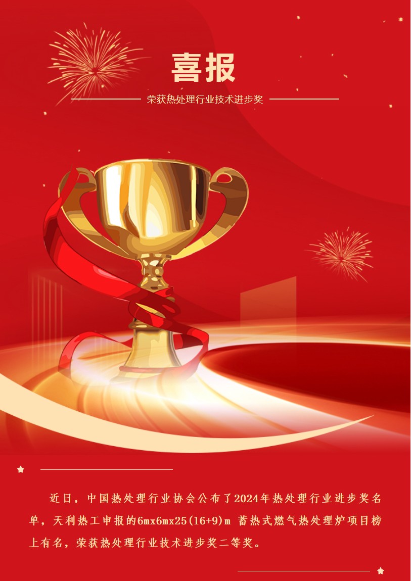 喜报 | 天利热工荣获热处理行业技术进步奖